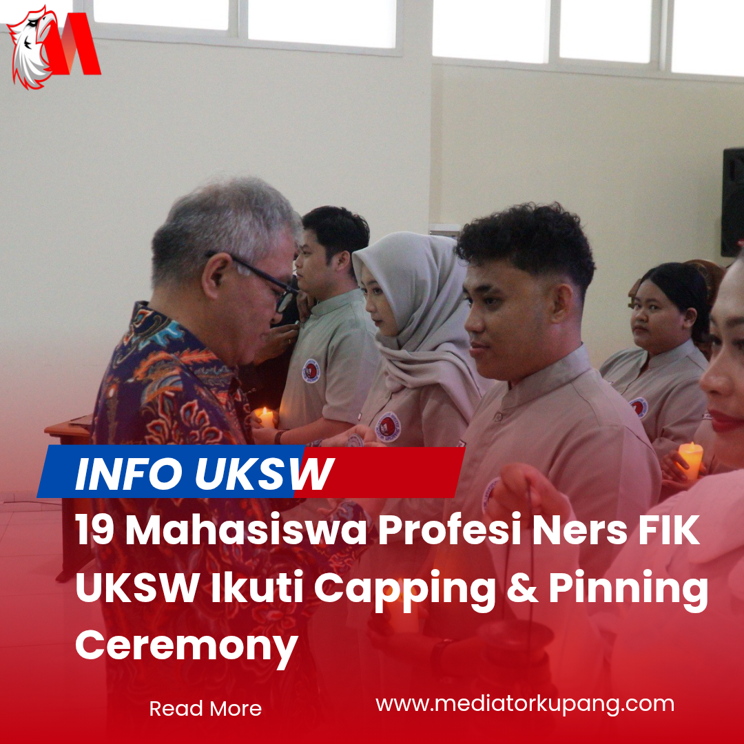 Salatiga (MEDIATOR)–Mengawali perjalanan pengabdian sebagai perawat profesional, sebanyak 19 mahasiswa Program Studi Profesi Ners Fakultas Ilmu Kesehatan (FIK) Universitas Kristen Satya Wacana (UKSW) mengikuti acara “Capping & Pinning Ceremony Angkatan II” di Grha Kartini, Jumat (10/04/2026) sore. Dalam suasana yang penuh khidmat, para mahasiswa berdiri tegak membawa lilin kecil di tangan yang merupakan lambang ketegasan dan keberanian seorang perawat untuk memberikan sebuah harapan di tengah penderitaan.