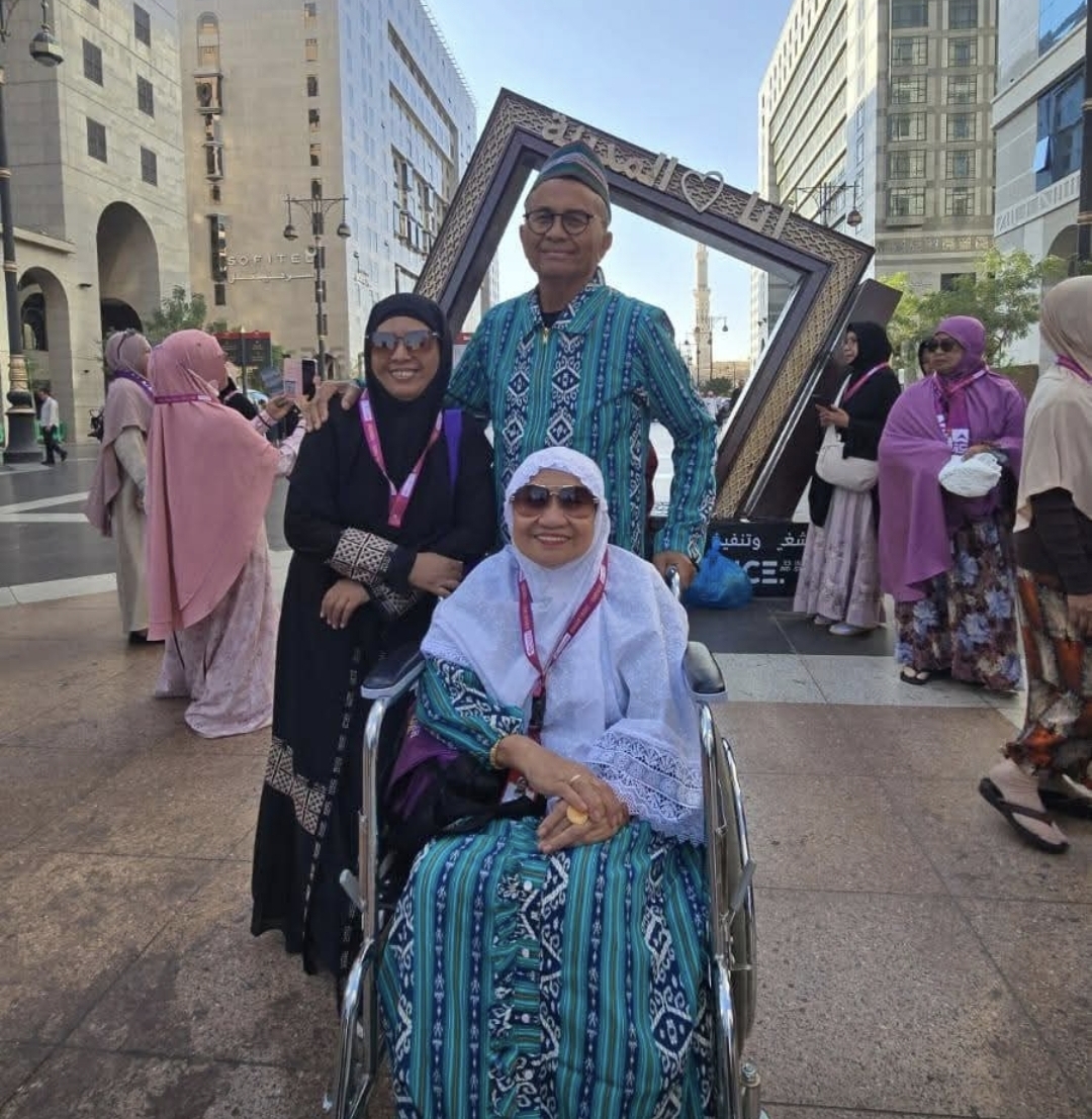 Memang selama di Makkah dan di Madinah, dia tetap pilih pakai kursi roda. Tapi itu lebih karena agar tidak kelelahan.