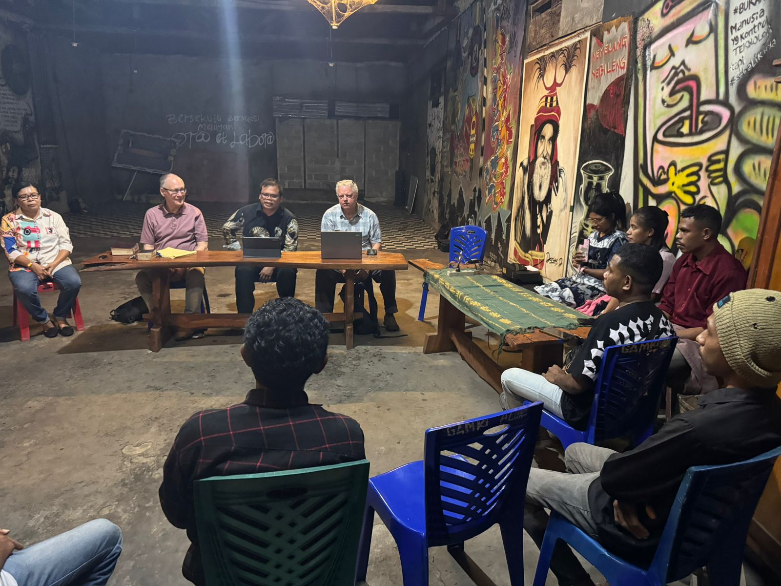 Pertemuan tersebut diakhiri dengan doa bersama dan diskusi kerja sama Yayasan yang dipimpin Dr David Robbins dan Dr Deve Benn dengan GAMKI Alor dalam bidang studi misi Misionaris di Jakarta dan Kanada.