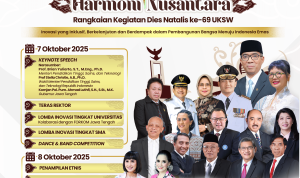 “Universitas Kristen Satya Wacana bukan menara gading. Kami hadir untuk berkontribusi nyata bagi bangsa melalui riset dan inovasi. Dari kota kecil ini, kami ingin menumbuhkan karya besar untuk Indonesia. Di sinilah denyut jantung Salatiga berdetak, UKSW menjadi rumah bagi Indonesia Mini,” tegasnya, disambut tepuk tangan penonton.