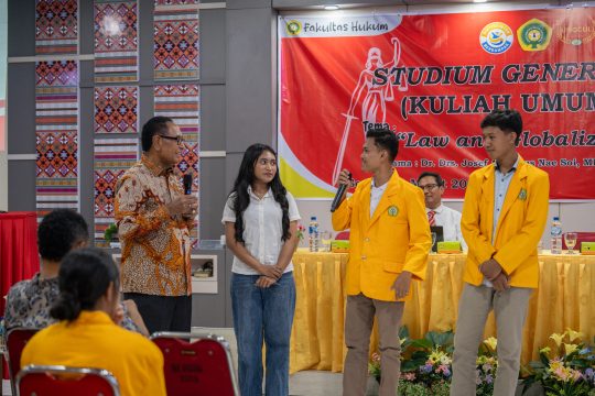Kupang (MEDIATOR)– Penguasaan hukum internasional bukan sekadar kewajiban akademik, melainkan instrumen vital dalam mempertahankan identitas dan kedaulatan bangsa di kancah global. Pesan kuat ini mengemuka dalam Studium Generale bertajuk “Law and Globalization” yang diselenggarakan Fakultas Hukum (FH) Universitas Nusa Cendana (Undana) di Ruang Vicon FH, Kupang, Senin (2/3).