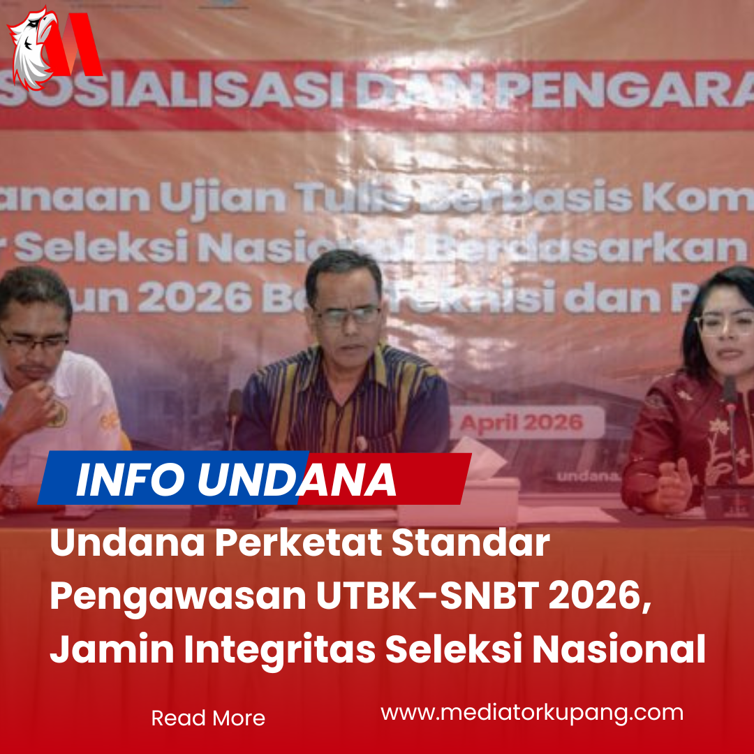Kupang (MEDIATOR) – Universitas Nusa Cendana (Undana) menggelar sosialisasi dan pengarahan intensif bagi pengawas Ujian Tulis Berbasis Komputer (UTBK) Seleksi Nasional Berdasarkan Tes (SNBT) 2026 di Aula Rektorat, Kamis (17/4/2026). Langkah strategis ini dilakukan untuk memastikan pelaksanaan ujian skala nasional tersebut berjalan optimal, transparan, dan memenuhi standar pelayanan profesional.